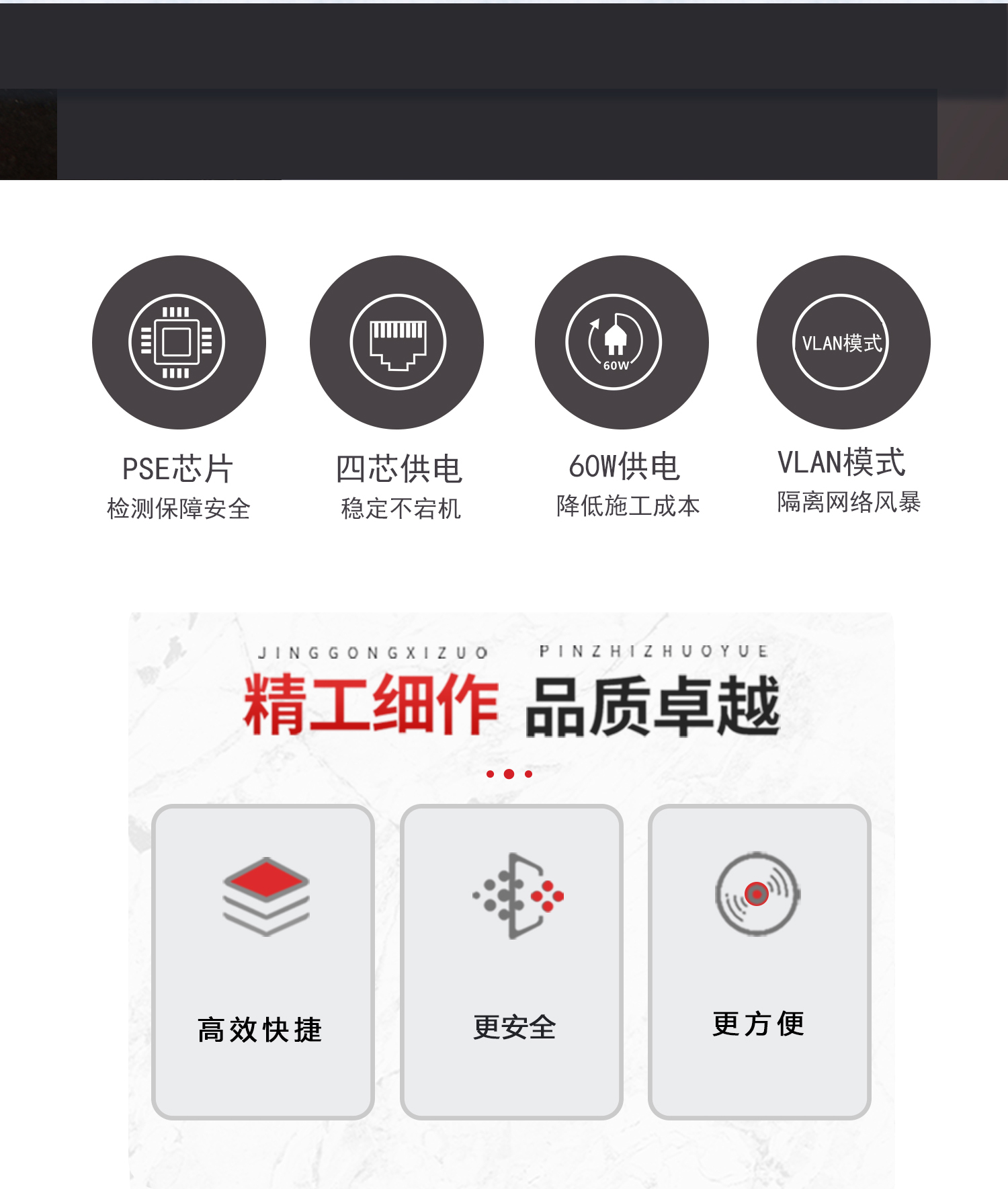 支持4口標(biāo)準(zhǔn)POE輸出,滿載功率60W;