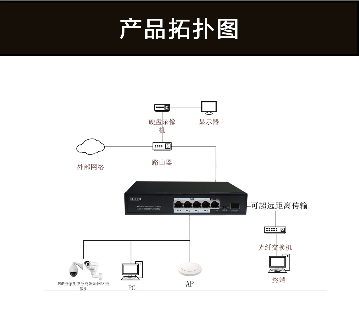 提供4個(gè)10M/100M/1000M自適應(yīng)端口,1個(gè)上行10M/100M/1000M自適應(yīng)端口,1個(gè)千兆SFP光口;
