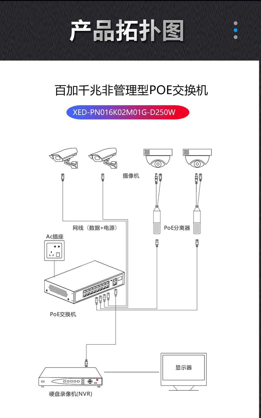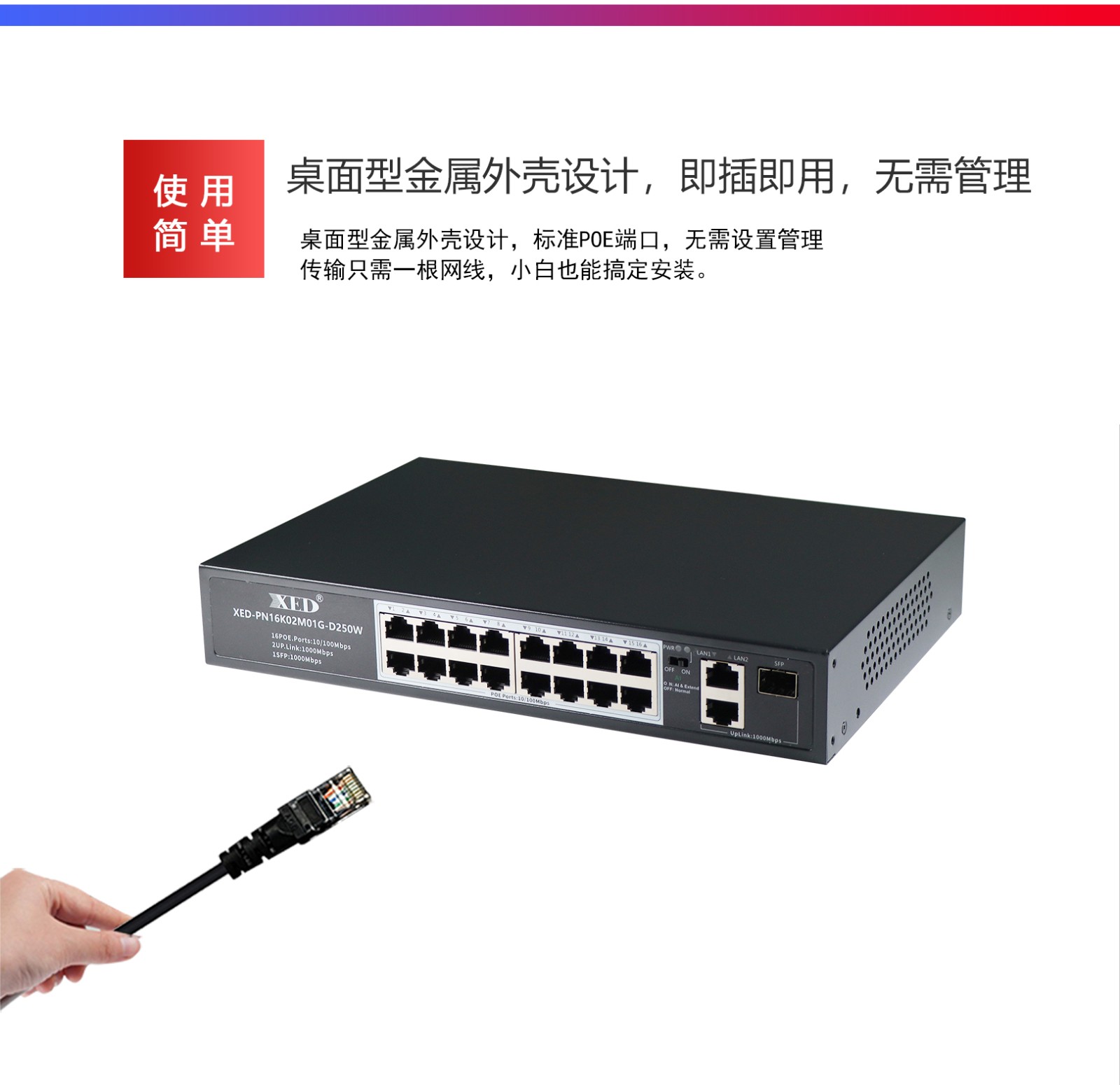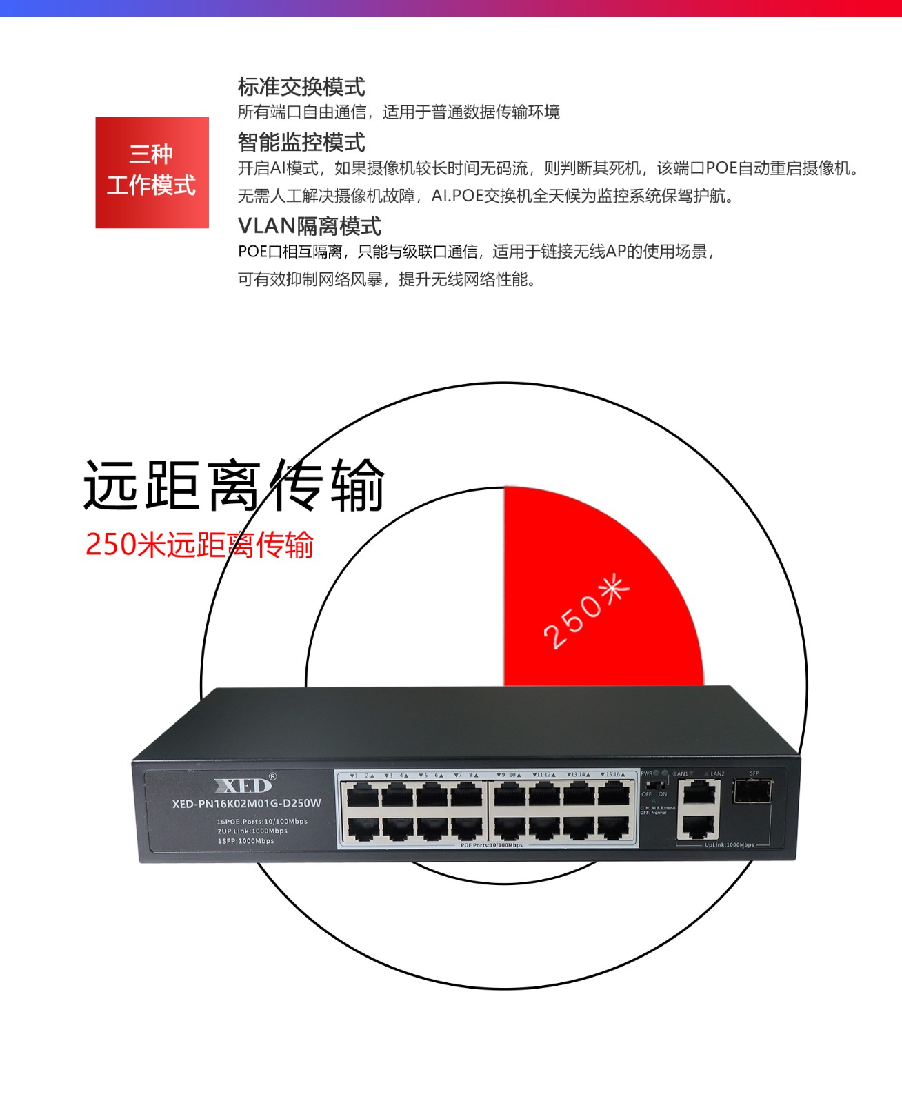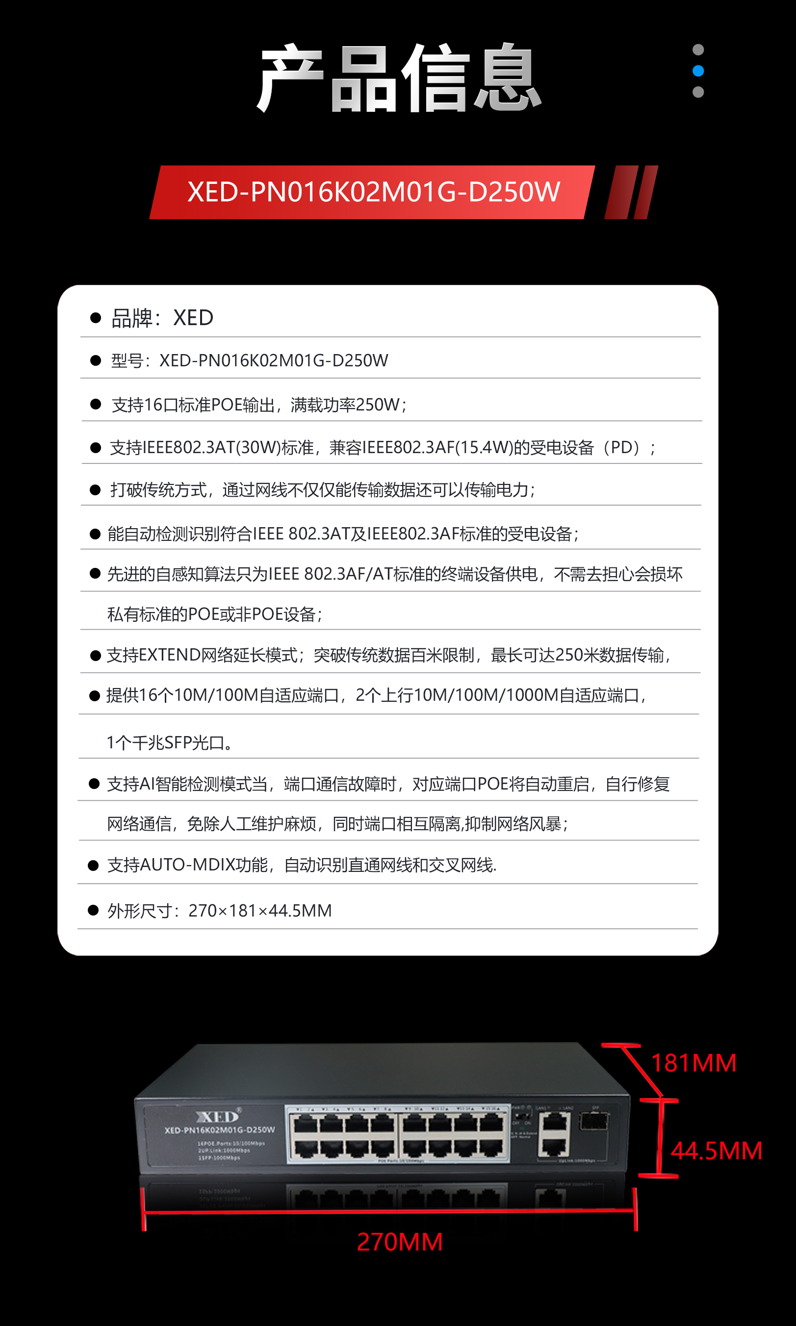 支持16口標(biāo)準(zhǔn)POE輸出,滿載功率250W;