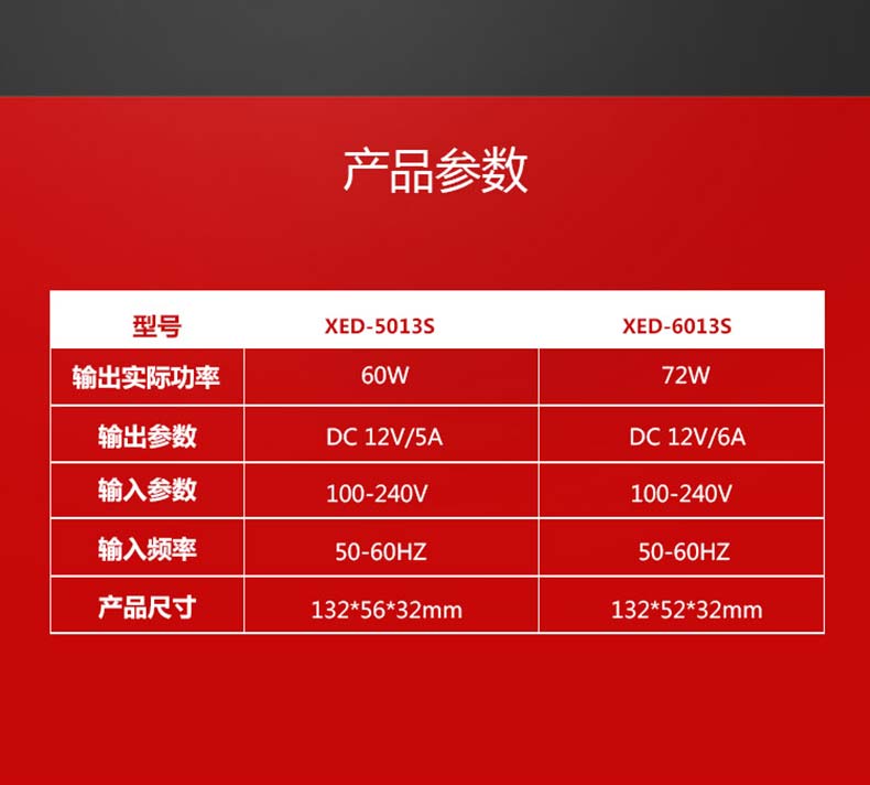 XED-5013S桌面式電源適配器,60W攝像機雙線電源適配器。