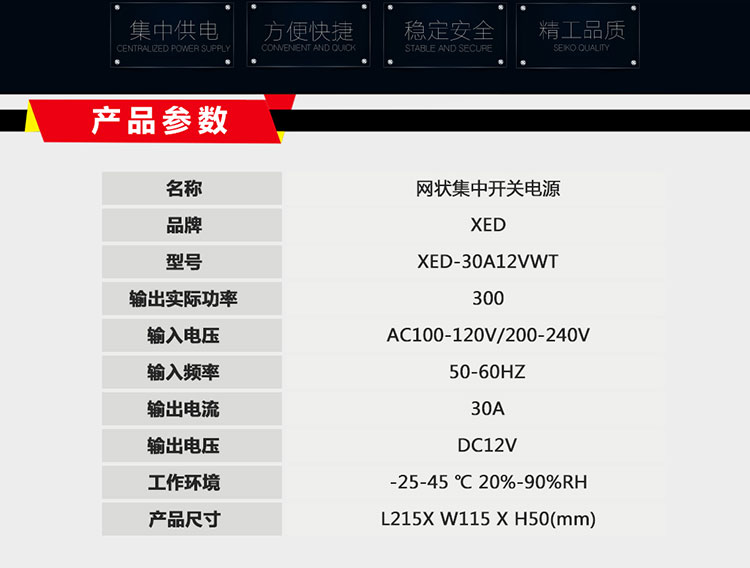 XED-30A12VWT網(wǎng)狀集中開(kāi)關(guān)電源,寬電壓AC100-240V輸入。