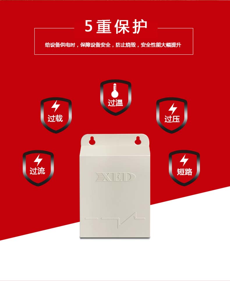 XED-RZ120200FS室內外通用監控防水電源,寬電壓DC100-240V輸入,適用在小區、大廈、森林、地鐵、高速公路、礦區、變壓站等復雜環境。
