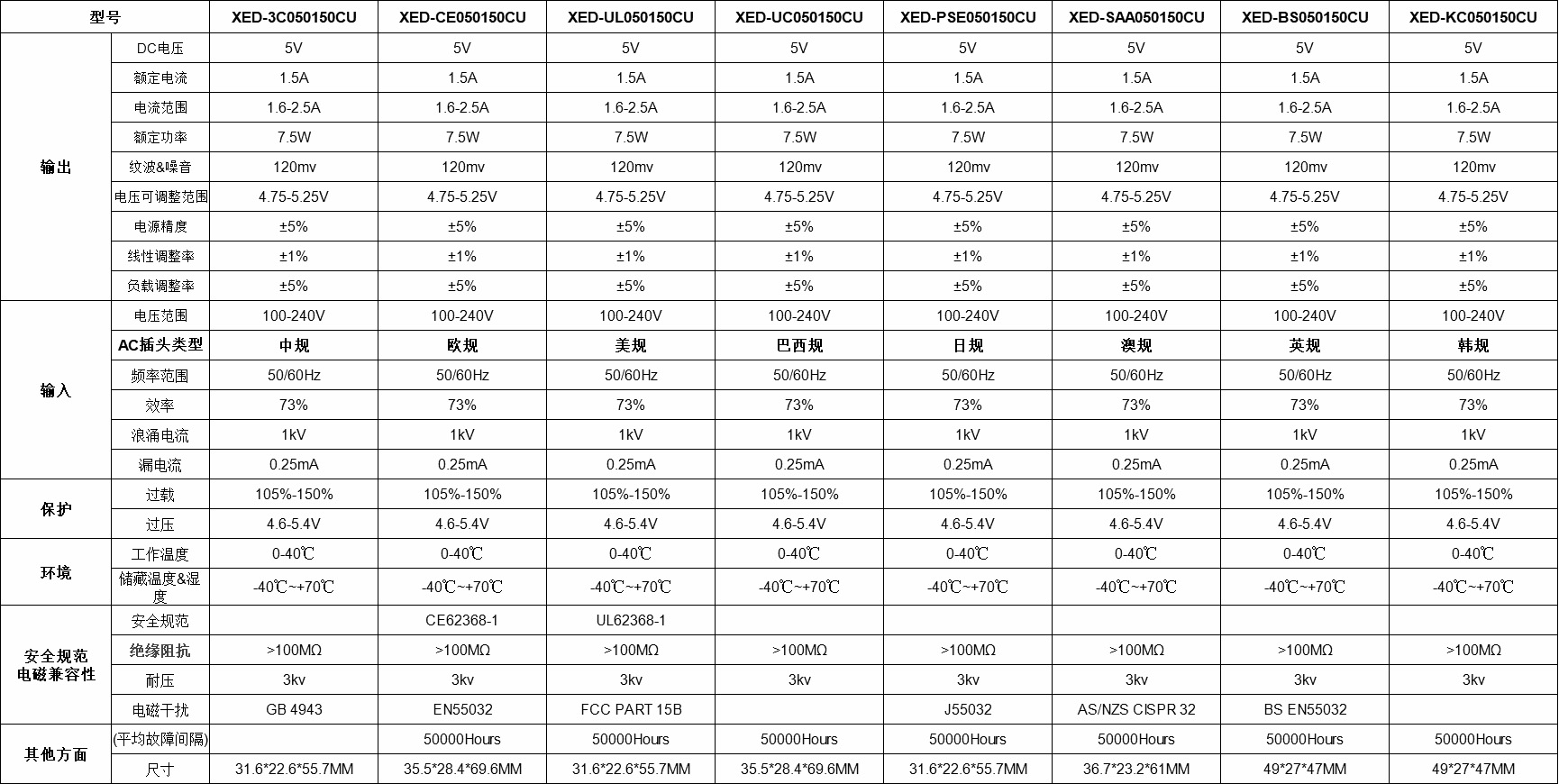XED-3C050150CU USB插墻式電源適配器,中規(guī)1.5A智能旅行充電器,通過全球認(rèn)證,過6級能效電源適配器。