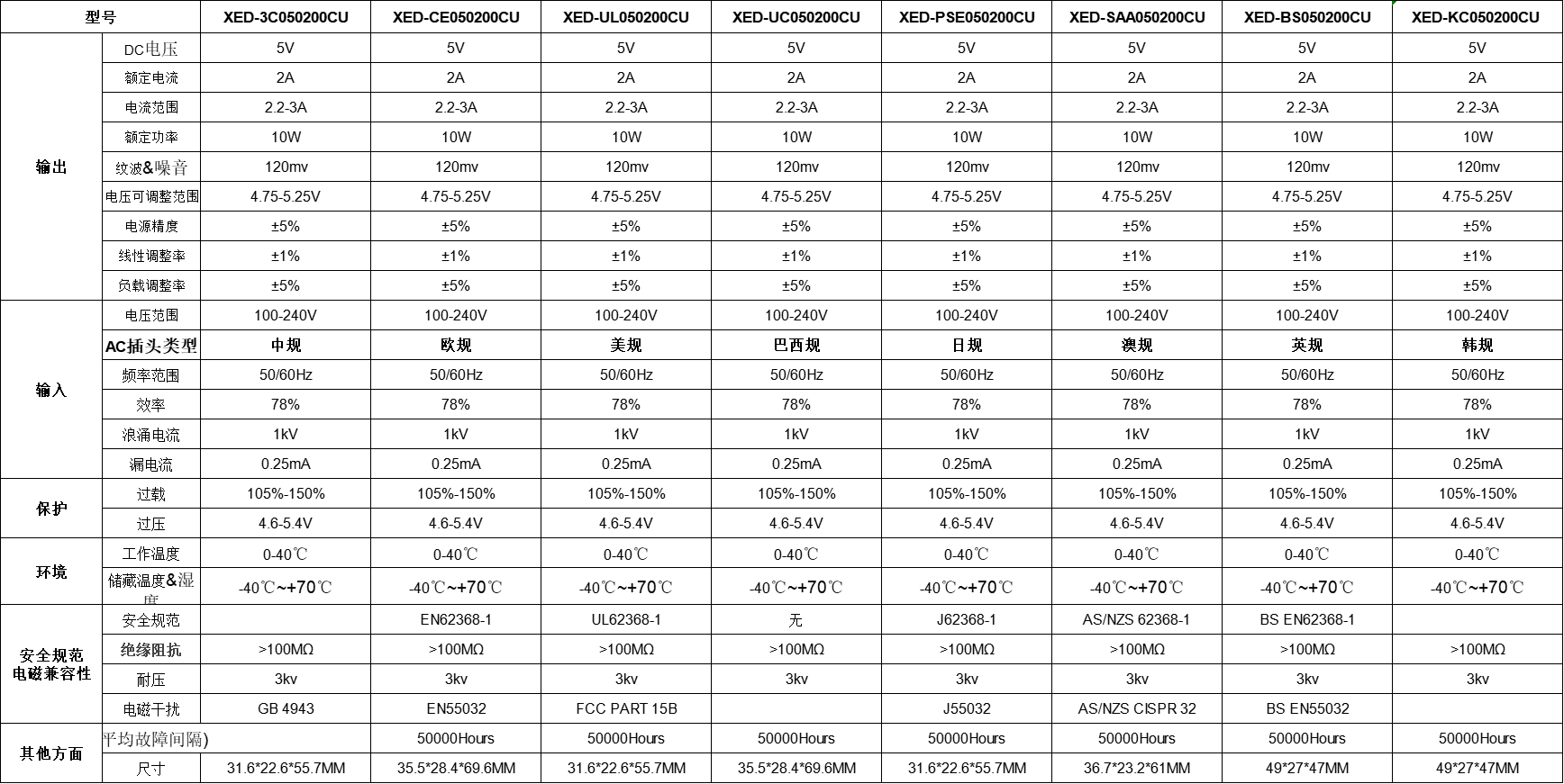 XED-CE020500CU USB插墻式電源適配器,符合全球認證,能過6級能效電源適配器。