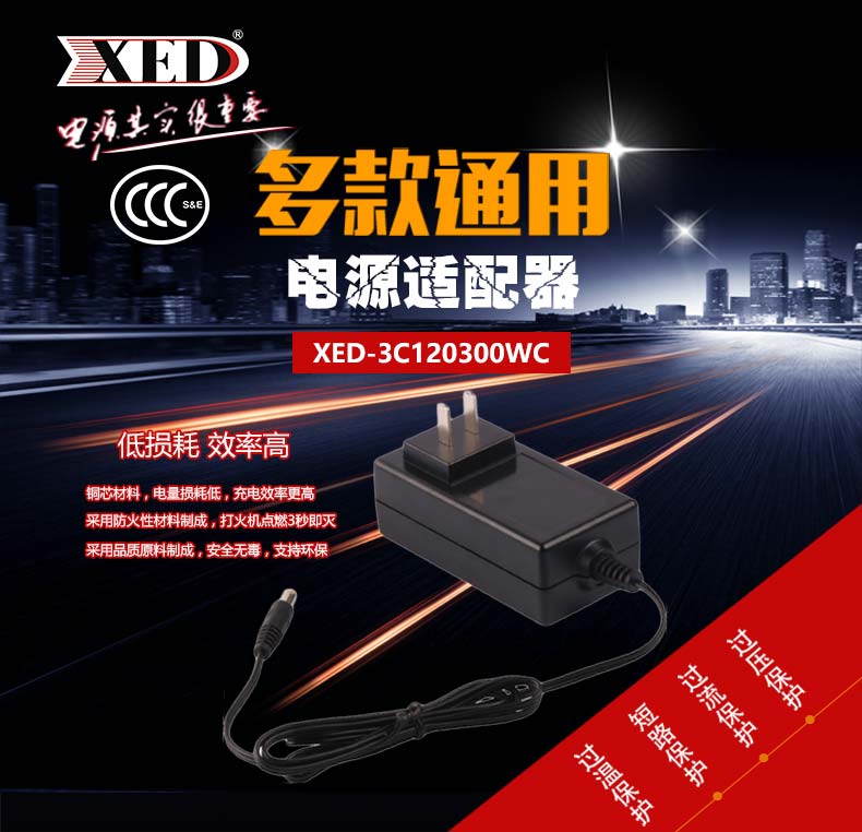 XED-SAA120300WC插墻式電源適配器,12V澳規直插式電源,過6級能效,通過多國認證。