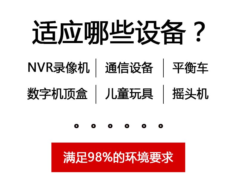 可適用范圍監控安防、軍工設備、科研設備、LED照明、工控設備、通訊設備、電力設備、儀器儀表、工業自動化控制、數碼產品、視聽產品和儀器等。