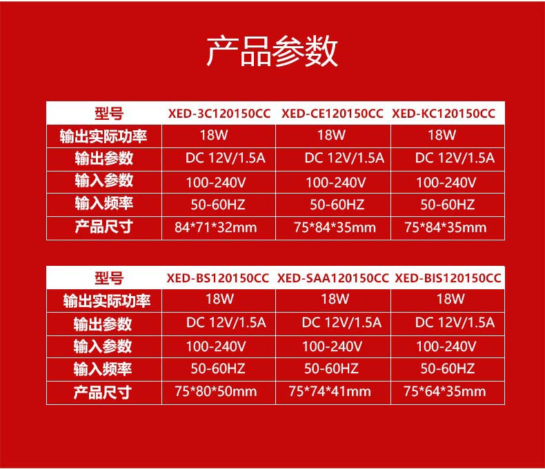 XED-3C120150CC插墻式電源適配器,18W中規直插式電源,過6級能效,通過多國認證。