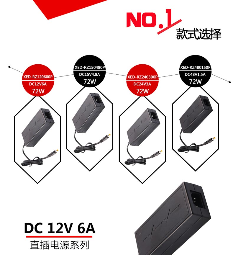 XED-RZ240300P品字尾電源適配器,72W桌面式電源適配器,能過6級能效,通過多國認證。