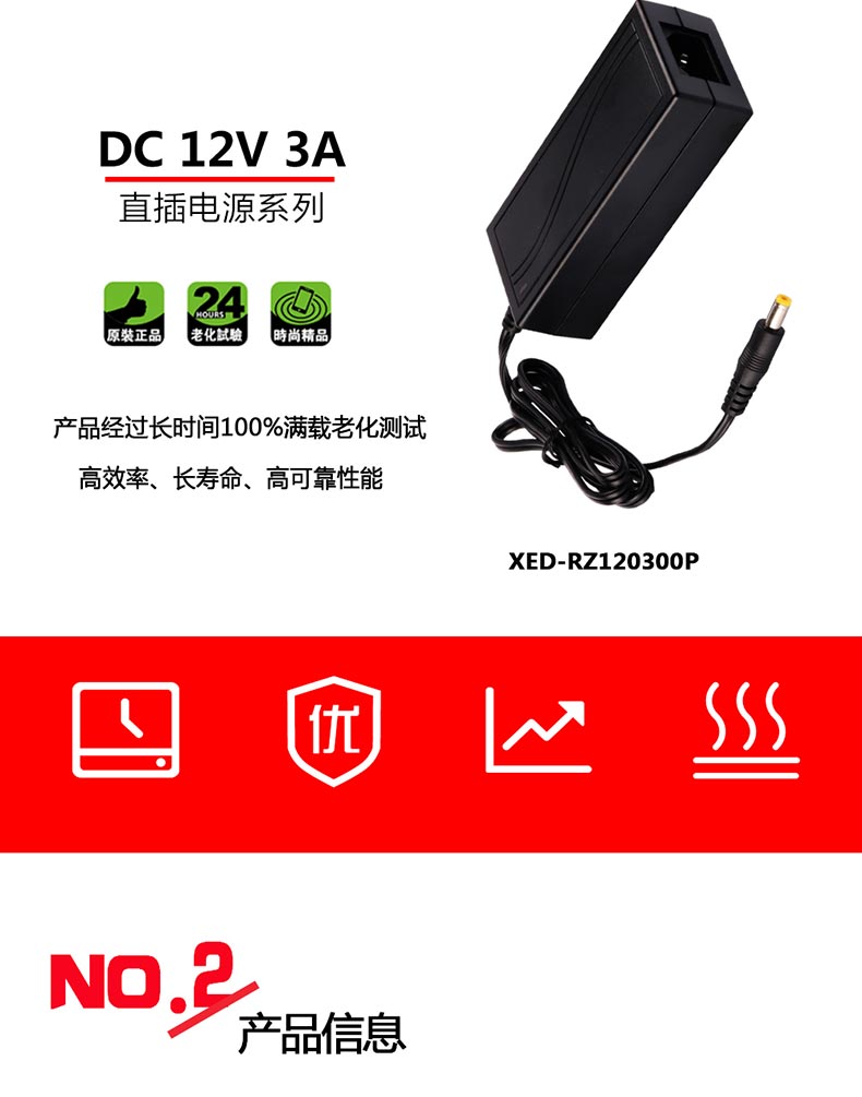 XED-RZ150240P品字尾電源適配器,36W桌面式電源適配器,能過6級能效,通過多國認證。