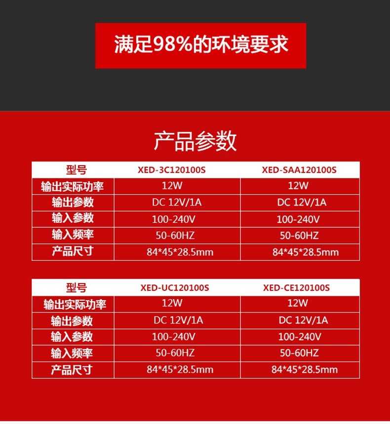 XED-3C120100S電源適配器,12V桌面式電源適配器,能過6級能效,通過多國認證。
