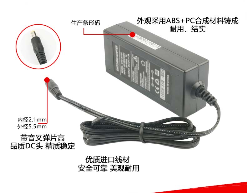 XED-6013B八字尾電源適配器,72W桌面式電源適配器。