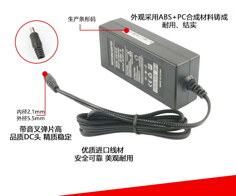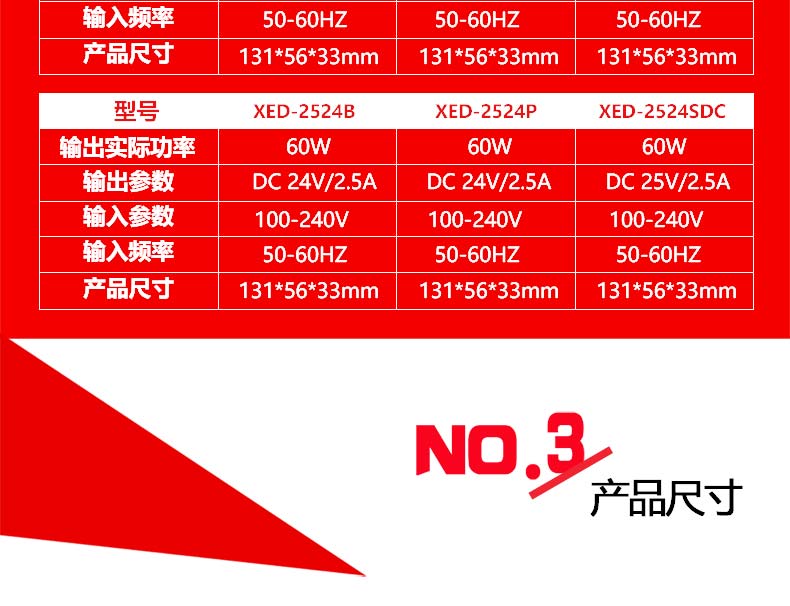XED-5013S雙線電源適配器,60W桌面式電源適配器。