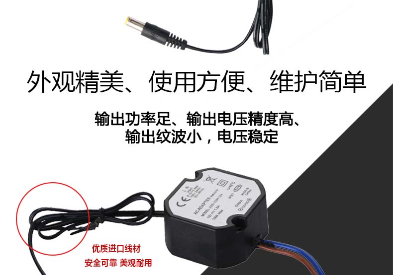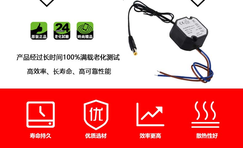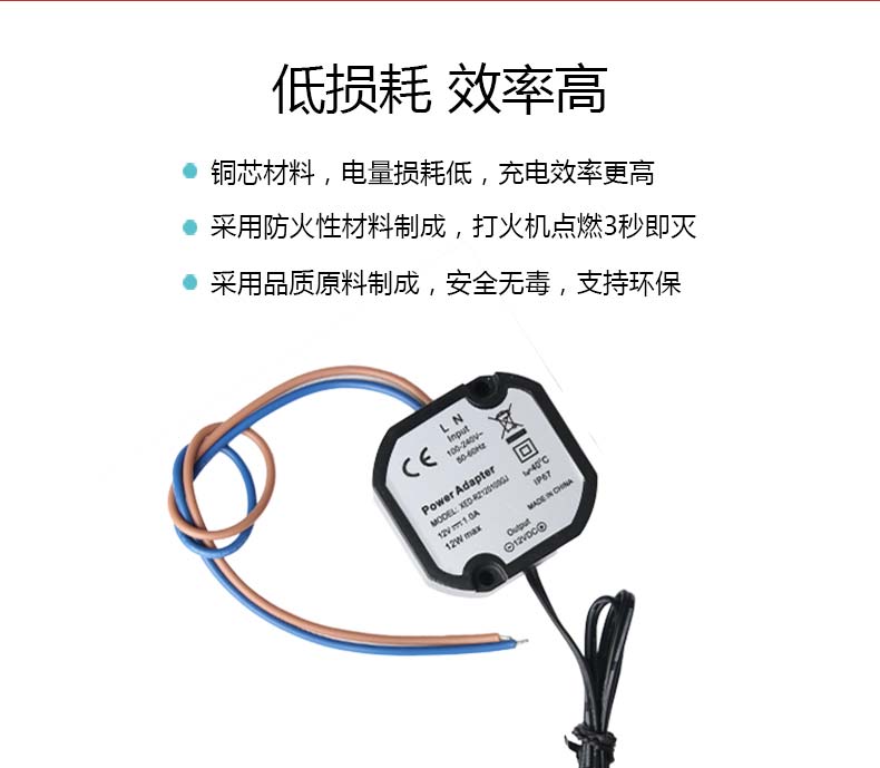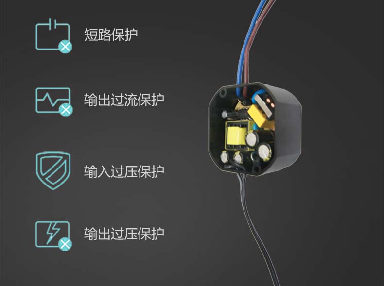 小型化開關(guān)電源,寬電壓輸入,穩(wěn)壓精準(zhǔn);具有過載、過壓、短路、過熱等多重保護(hù);防水等級(jí)IP67。