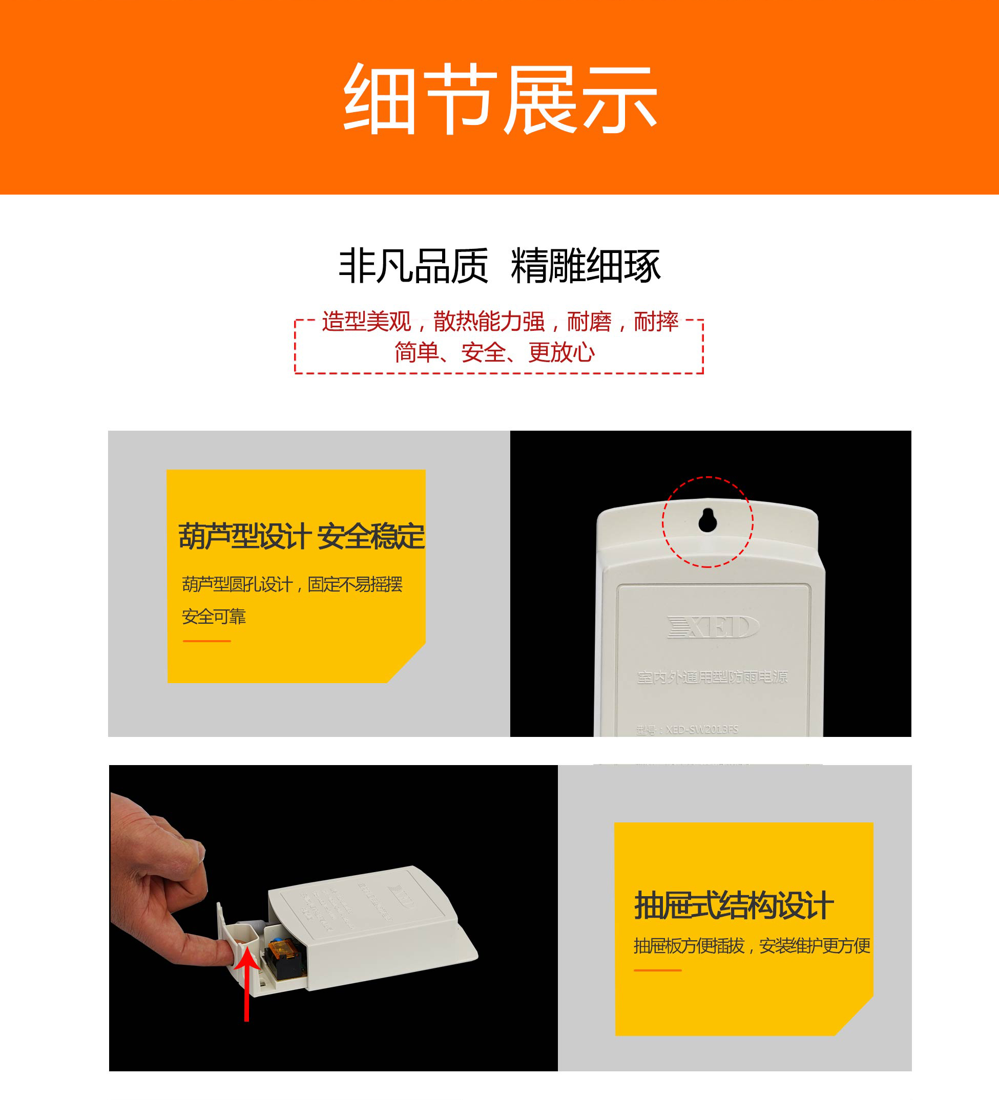 XED-SW2013FS室外防水壁掛監(jiān)控電源,24W端子接口監(jiān)控電源。