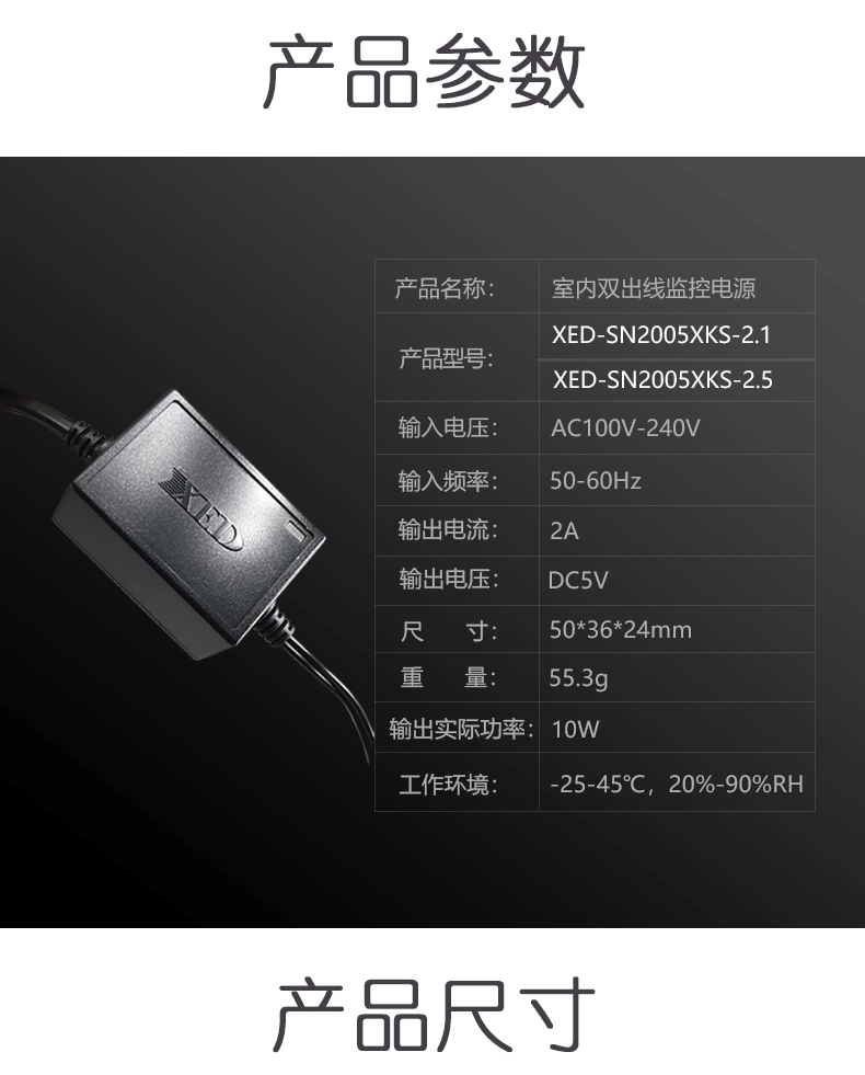 返回列表XED-SN2005XKS桌面式電源適配器,中規5V電源適配器。