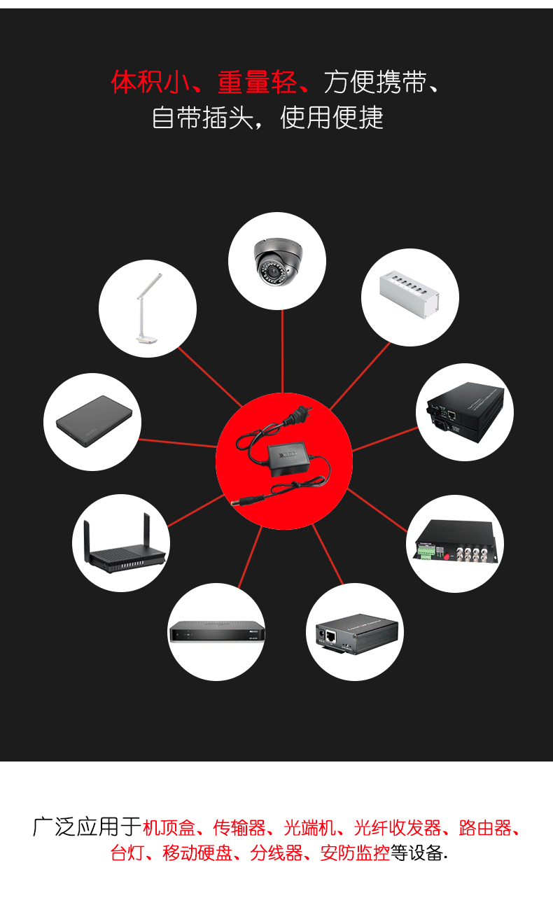 可適用范圍監控安防、科研設備、LED照明、工控設備、通訊設備、電力設備、儀器儀表、工業自動化控制、數碼產品、路由器、指紋機、視聽產品和儀器等。