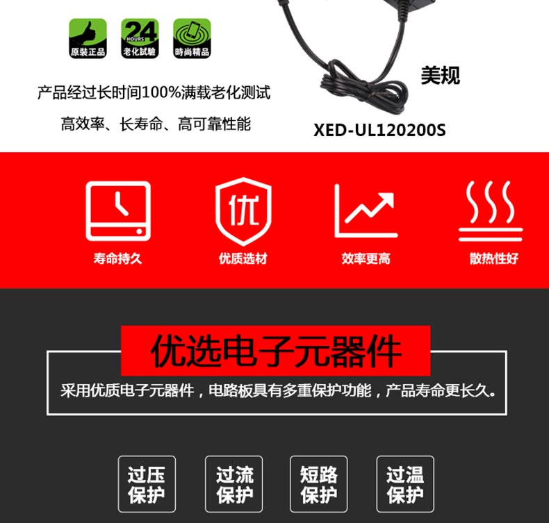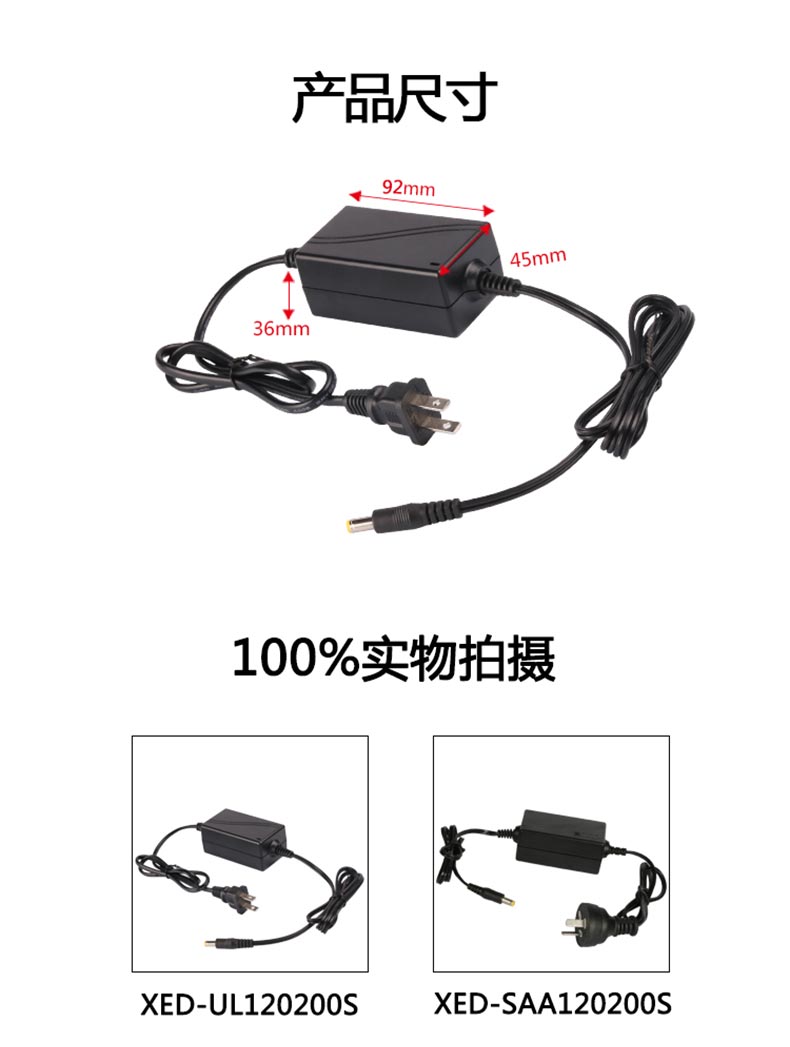 XED-UL120200S美規電源適配器,24W桌面式電源適配器,能過6級能效,通過多國認證。